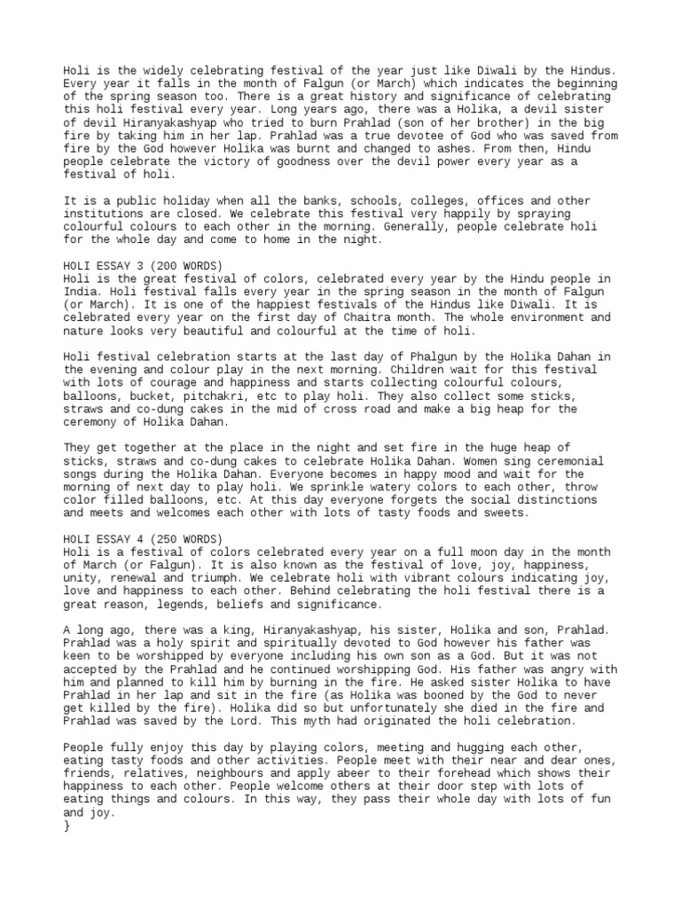 Holi Essay In English For Class 5 : In the morning i get ready myself for school.